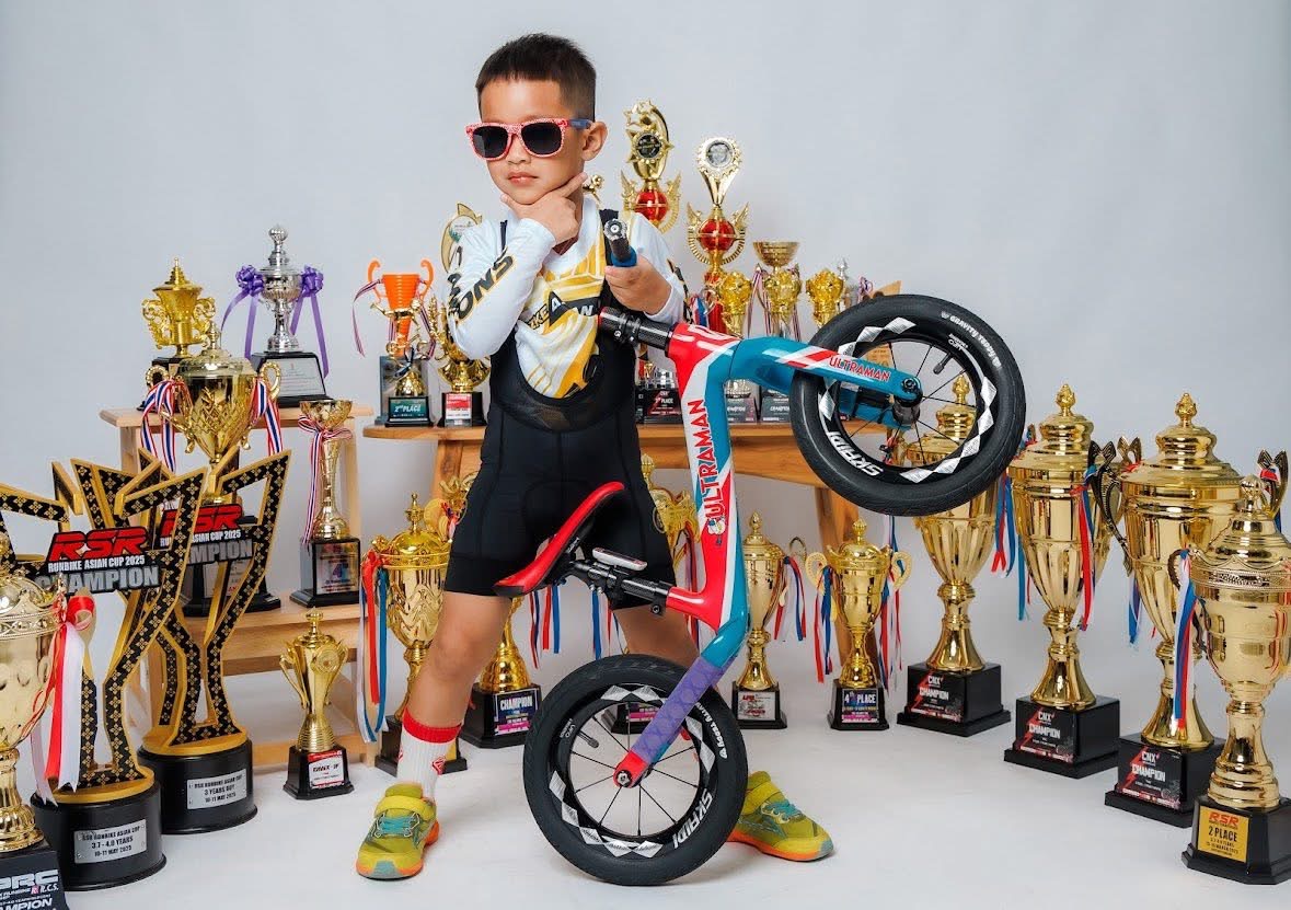 在泰國清邁,一位年僅4歲的小男孩正在寫下屬於自己的故事。他叫 Dino,眼神堅定、態度自信,站在滿牆的獎盃前,彷彿在告訴大家:「這是我一步一步贏來的榮耀。」